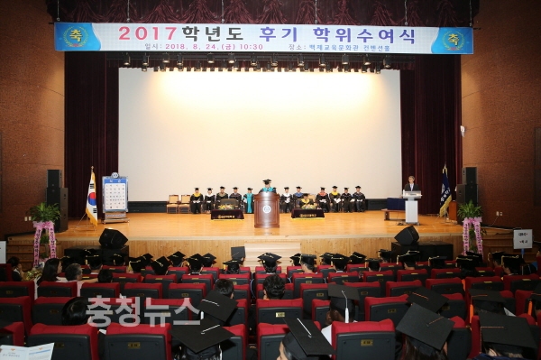 공주대학교(총장직무대리 김희수)는 24일 본교 백제교육문화관 컨벤션홀에서 김희수 총장직무대리를 비롯한 본부 보직교수, 단과대학 학장, 관련 교수, 학부모, 내빈 등이 참석한 가운데 2017학년도 후기 학위수여식 행사를 가졌다.