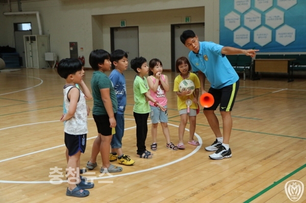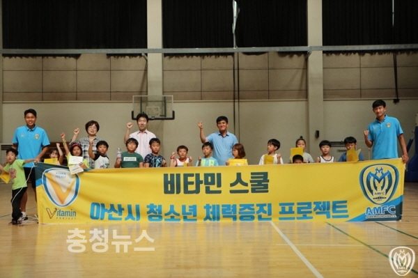 선문대학교 강당에서 진행된 비타민 스쿨은 축구 기본기 수업, 미니축구게임, 신체활동 프로그램, 사인회 순서로 실시되며 어린이들에게 소중한 추억을 선사했다.