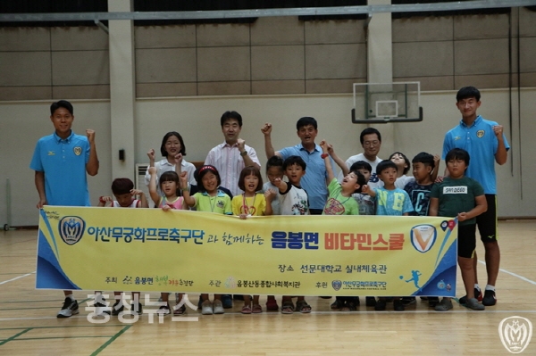 음봉면 행복키움추진단을 비롯한 아산 관내 초등학교를 순회하며 지속적으로 ‘비타민 스쿨’을 통해 어린이들과 인연을 이어가고 있는 아산무궁화프로축구단은 25일 오후 7시 이순신종합운동장에서 열리는 KEB하나은행 K리그2, 25R 서울 이랜드와의 경기를 앞두고 있다.