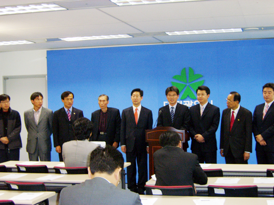민주당 충남도당 (위원장 양승조) 국회의원은 6일 대전시청에서 기자회견을 갖고 지방에 대못박는 이명박 정부는 ‘수도권 규제완화정책’을 즉각 철회하라는 성명서를 발표했다.