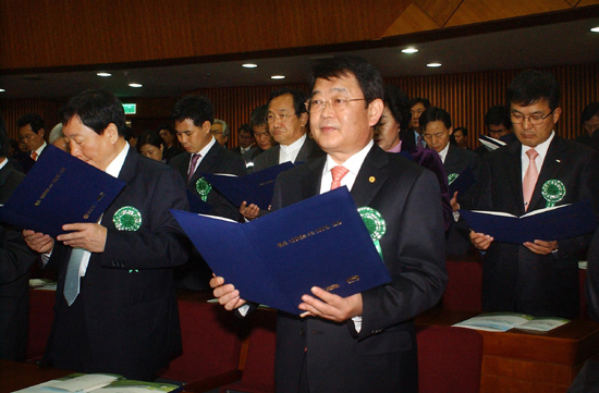 6일 오전 국회 헌정기념관에서 국회 국토해양위원회와 국토해양부 주관으로 열린 '철도 100년을 위한 100인 선언'에 박성효 대전시장은