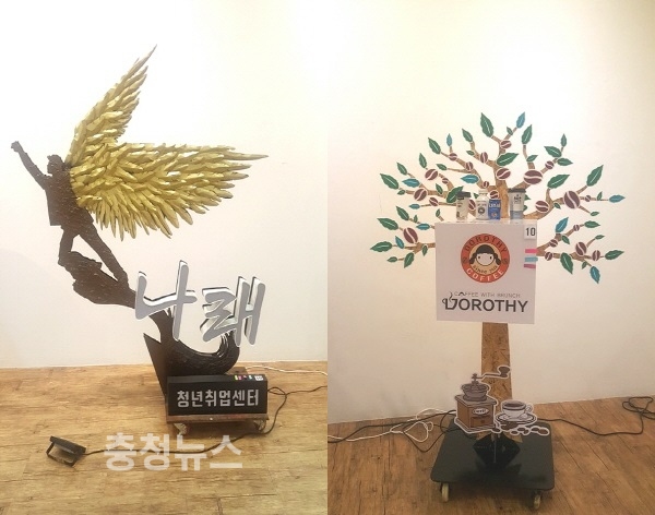 (좌) 최우수상 나래청년취업센터, (우) 우수상 도로시 cofee