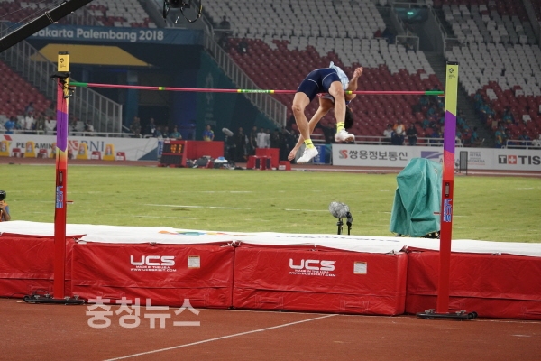 충남 서천군청 육상팀 우상혁 선수가 지난 27일(한국시간) 인도네시아 자카르타 팔렘방 아시안게임 높이뛰기 결선에서 2m28cm를 뛰어 은메달을 따냈다.