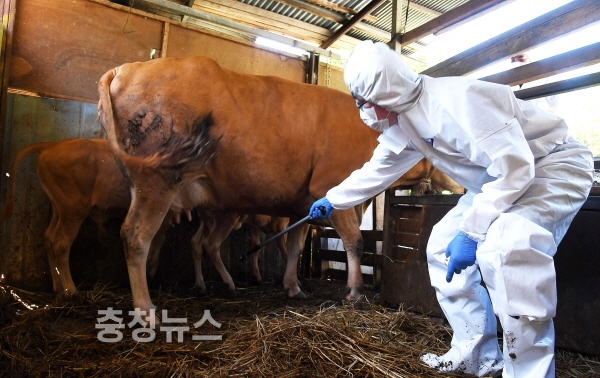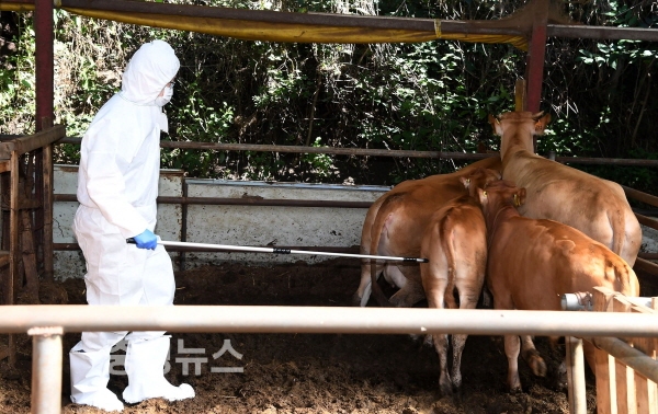 29일 구 방역담당자와 공수의는 구제역 예방백신 접종과 방역활동을 전개했다. 접종 대상은 생후 1년이 안된 송아지들로 총 69마리다.