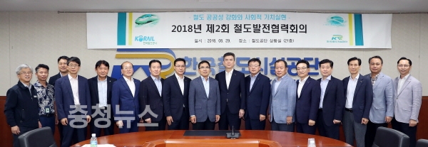 철도발전협력회의 공동위원장 정인수 철도공사 부사장은 “언제나 국민의 삶과 함께 했던 양 기관의 사회적 가치와 역할은 미래에 더 커질 것”이라고 언급하며,