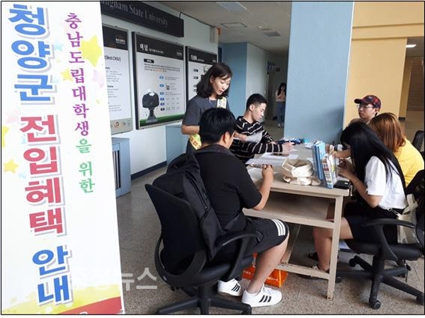 충남 청양군과 충남도립대의 상생발전을 위해 청양군에서는 도립대 청년 학생에게 많은 지원을 아끼지 않는 가운데 기획감사실 인구청년 정책팀에서 2학기 개강맞이 충남도립대 이동민원실을 운영중이다.(8. 29. ~11.28중 매주 수요일)