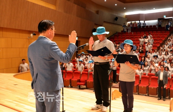 이 자리에서 자원봉사자들은 최호현, 송재의를 대표로 선서문을 낭독하고 친절과 미소로 충남 도민을 맞으며 성실한 봉사활동에 임할 것을 다짐했다.