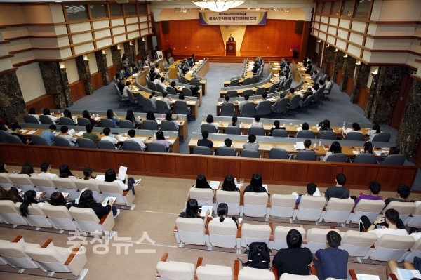 난민 문제에 대한 발표와 토론이 이어졌다. 송영훈 교수(강원대 난민연구소 소장)는 ‘제주 에멘 난민신청자 유입과 갈등적 난민담론’, 김재신 단국대 교수는 ‘시리아 난민의 트라우마와 정신건강 문제’를 발표했다.