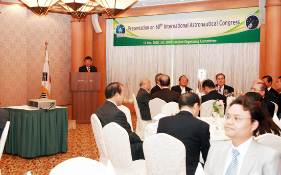 대전시가 13일 'IAC(국제우주대회) 2009 Daejeon' 조직위원회와 공동으로 서울 조선호텔에서 주한외국공관장, 외국기업체 주재대표, 정부.기관 주요인사 등을 대상으로 내년 대전에서 열리는 국제우주대회 설명회를 가졌다.