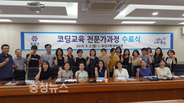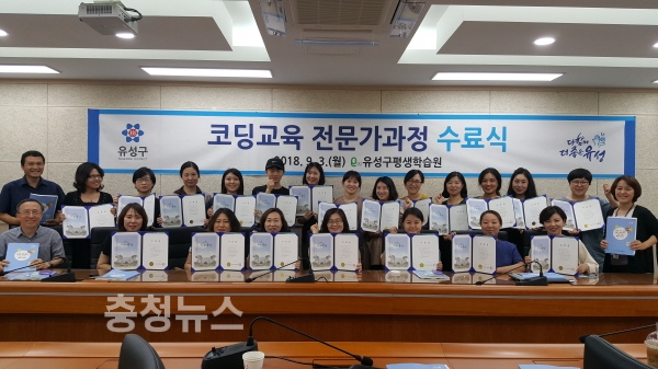 대전 유성구 평생학습원(원장 이하경)은 초‧중학교 코딩교육 의무화에 대비해 코딩교육 전문가 과정을 운영하고 3일 수료식을 가졌다.