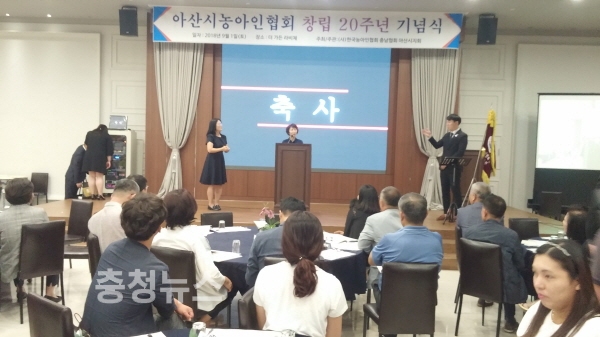 (사)한국농아인협회충남협회 아산시지회(지회장 김성완) 창립 20주년 기념행사가 지난 1일 더가든 라비체에서 열렸다.