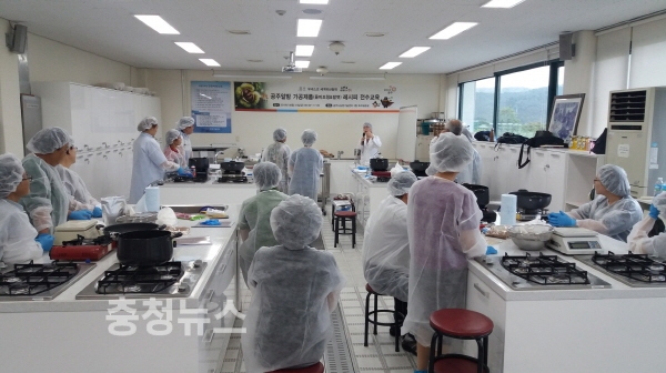 이날 교육에는 관내 밤 가공업체 종사자와 희망농가 등 22명이 참여한 가운데 연구 개발된 레시피를 이용해 공주밤과 지역농산물로 구성된 재료를 가지고 현장에서 직접 실습하는 교육 형태로 진행됐다.