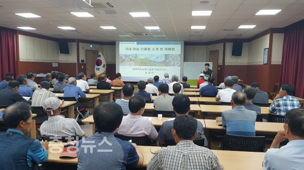 이날 교육은 충청북도 마늘연구소 정재현 연구사의 우량마늘 생산을 위한 종합강의로 진행됐다.