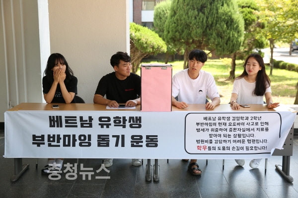 학생들은 지난달 14일 등굣길에 교통사고를 당해 중상을 입은 베트남 유학생 부반마잉 씨(22. 한남대 경영학과 2학년)가 병원비가 부족해 어려움을 겪고 있다는 소식을 듣고 자발적으로 돕기운동에 나섰다.