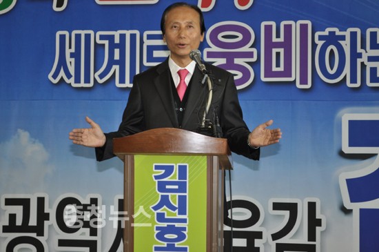 김신호 전 대전시교육감이 18일 서구 둔산동 대신빌딩 4층 자신의 선거사무소에서 대전시교육감 선거 출마 기자회견을 가졌다.