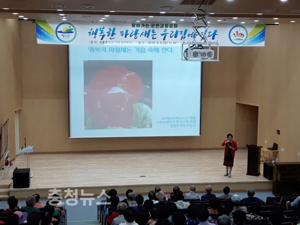한편, 맞춤형 군민교양강좌는 새로운 지식과 정보의 습득을 위한 수요자 중심의 찾아가는 맞춤식 강좌로 군민의 요구에 부응하는 교육의 장을 마련하기 위해 다양한 계층을 대상으로 매년 4∼5회를 운영하고 있다.