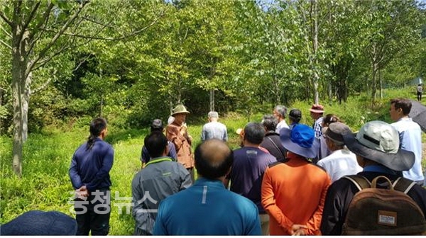 지난 4일 청양군농업기술센터는 농업인대학 양봉 심화반 교육생 40명을 대상으로 공주시 소재 황금약초농원에서 헛개나무 재배기술 현장교육을 시행했다.