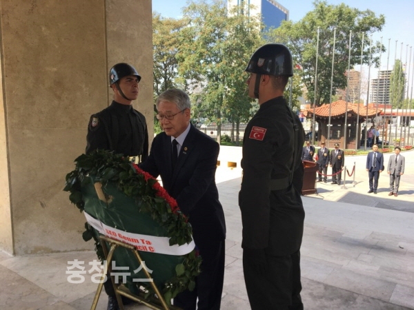 세종특별자치시의회 서금택 의장은 5일 앙카라 한국공원 기념탑에 헌화하고, 5명의 참전용사들을 만나 양국의 우의를 다졌다.