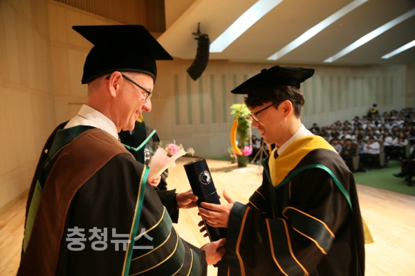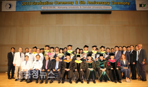 건양대학교(총장 이원묵)는 지난 6일 오후 대전 메디컬캠퍼스 죽헌정보관 리버럴아츠홀에서 건양대와 오스트리아 국립 다뉴브(Danube)대학교가 함께 운영하는 보건복지대학원 물리치료학과 복수학위과정 5주년 기념식 및 학위수여식을 개최했다.