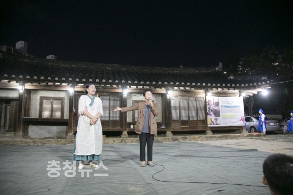 마당극은 첫째마당<호연재 마님>을 시작으로 둘째마당<법천누이 김호연재>, 셋째마당<호연재 숙모> 순으로 진행됐고 마지막 넷째마당<세 명이 김호연재>에서는 모든 출연진과 관객이 함께 어우러져 춤을 추고 노래를 부르며 흥을 돋았다.