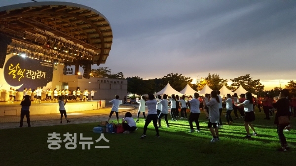 충남 아산시보건소(소장 김은태)가 지난 6일 일상생활에서 쉽게 실천할 수 있는 걷기운동의 확산 분위기 조성을 위해 신정호 국민관광단지 일원에서 ‘달빛건강걷기’행사를 개최했다.