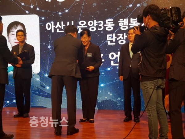 2016년 온양3동 행복키움추진단장으로 선출돼 탁월한 리더십과 열정으로 전국에 온양3동 민관협력사업의 우수성을 알리는데 공헌한 공로를 인정받아 이번에 대통령표창을 받게 됐다.
