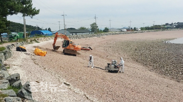 이번 합동 훈련은 대산항 인근 해상에서 선박 간 충돌사고로 인해 벙커C유 50킬로리터가 유출돼 이중 일부가 조류를 통해 해안가로 부착된 상황을 가정하고, 6개 기관, 해운사, 민간업체 등 방제인력 43명과 선박1척, 굴삭기, 비치클리너, 저압세척기 등 전용장비 7대를 동원해 실시됐다.