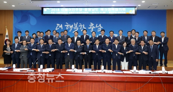 이해찬 더불어민주당 대표, 양승조 충남도지사 등이 참석한 가운데 진행된 이날 협의회는 2019년 정부예산확보 및 지방자치 강화 방안 마련을 위해 도정 현안 보고, 토론 등으로 진행되었다.