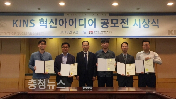 한국원자력안전기술원(원장 손재영, 이하 KINS)이 지난 11일 본관에서 전국민 혁신 아이디어 공모전 시상식을 갖고 우수 공모작에 대한 상장과 상금을 전달했다.