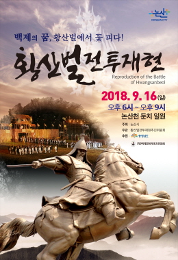 ‘황산벌전투재현’은 황산벌에서 긴박했던 역사현장을 긴장감 넘치는 대서사시극으로 재현해 황산벌을 호령하던 계백장군과 5천 결사대의 숭고했던 투혼을 기리고자 격년제로 개최하고 있다.