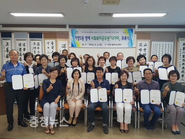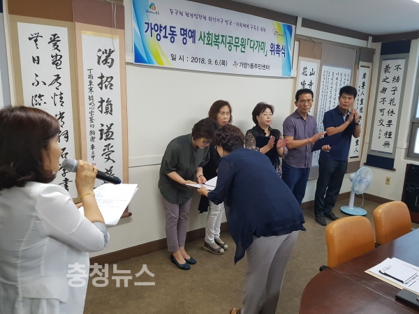 구는 지난달 27일 민관 복지협업 거버넌스 구축을 위해 지역 주민 등 800명을 명예사회복지공무원 ‘다가미’로 위촉했으며, 6일에는 가양1동과 판암2동 11일에는 가양2동이 잇따라 위촉장 전수식을 개최했다.