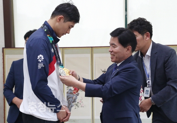 황 청장은 이들 선수와 코치진을 초청한 자리에서 메달 획득을 축하하면서, 훌륭한 성적으로 지역과 대한민국을 빛낸 데 대해 감사의 뜻과 함께 소정의 격려금을 전달했다.