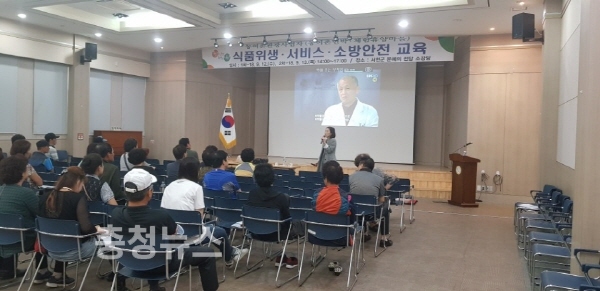 교육 참여자들은 식중독 예방, 식재료 관리, 위생 관리, 서비스 마인드, 소비자 분쟁 해결기준 안내, 소방시설물 안전관리, 소화기 사용법, 응급처치 방법 등 식품위생 교육, 서비스 교육, 소방안전의 교육을 받았다.