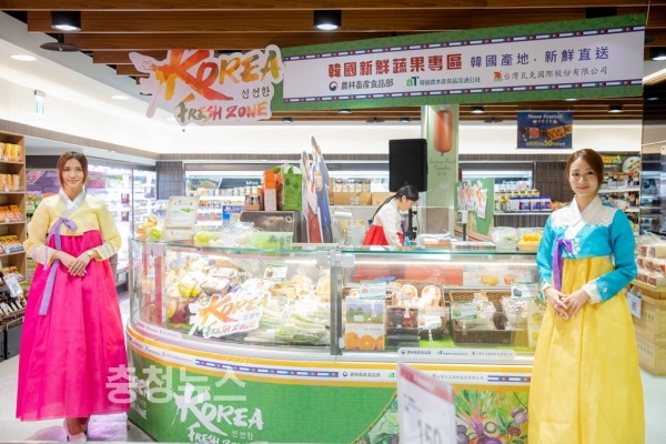농림축산식품부(장관 이개호)와 한국농수산식품유통공사(aT, 사장 이병호)는 대만 내 고급 슈퍼마켓인 제이슨 마켓 플레이스(Jasons Market Place)에서 국산 신선농산물 20여종을 전용 판매하는 'K-Fresh Zone'을 열었으며, 지난 12일 개소식을 성황리에 개최했다.