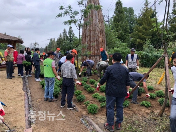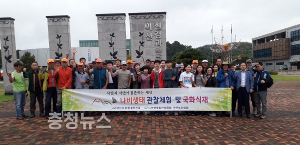 야생생물관리협회 아산지회(회장 김순복) 및 모니터 요원 30명, 자연보호협의회(회장김호교) 회원10명, 자원봉사 학생 20명이 모여 나비보호 및 생물다양성 증진을 위한 국화꽃(1000본)과 꽃(1000본) 식재했다.