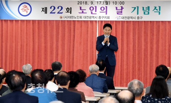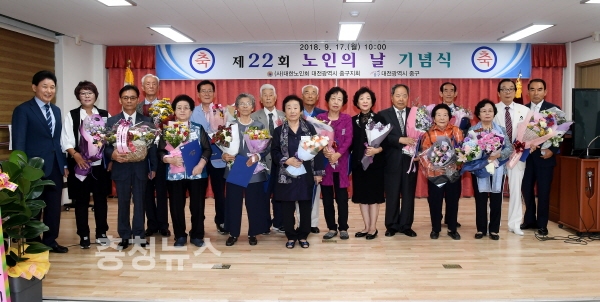 대전 중구(구청장 박용갑)는 17일 대한노인회 중구지회 2층 강당에서 ‘제22회 노인의 날’기념행사를 가졌다.