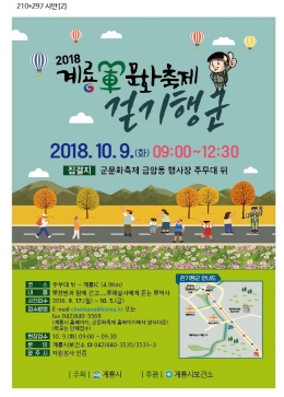 계룡시는 군문화축제와 하나되는 지역주민의 건강생활 실천 분위기를 제고하고자 ‘2018년 계룡군문화축제 걷기 행군’을 개최한다.