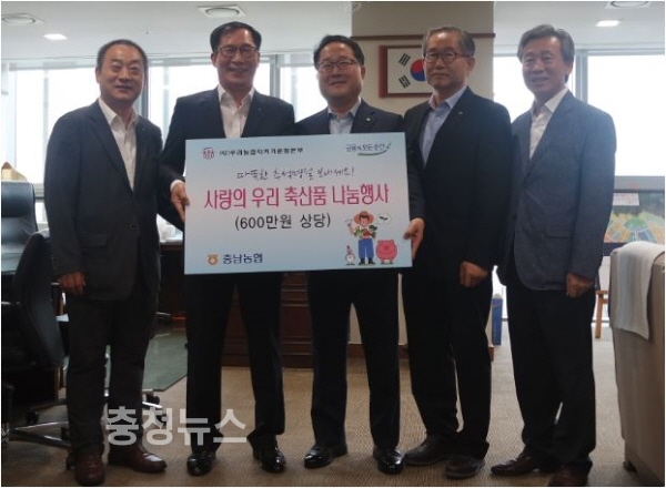 이날 전달된 우리 축산품은 지역 소외계층을 위해 우리농업지키기운동본부를 통해 NH충남노조로 지원된 목우촌 선물세트 120세트(육백만 원 상당)이며 전국적으로 3000세트(일억오천만 원 상당)이 지원될 예정이다.