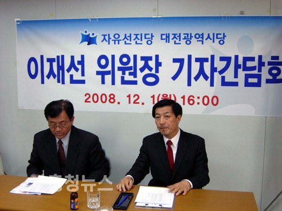 이재선 대전시당위원장이 1일 오후 자유선진당 대전시당에서 기자 간담회를 갖고 수도권 규제완화에 따른 선진당의 입장을 밝혔다.
