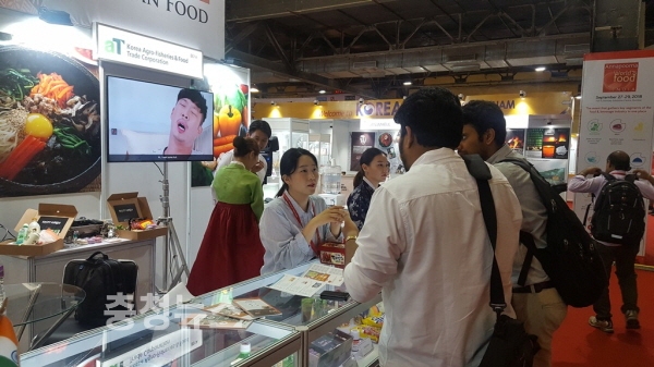 이번 한국관은 18개 수출업체가 참가해 라면과 떡볶이 등의 즉석식품과 비타민, 기능성 드링크 등 건강기능식품을 선보이며 인도의 젊은 중산층에게 확산되고 있는 간편식과 건강한 식문화 트렌드를 중심으로 인도 시장을 공략하고 있다.