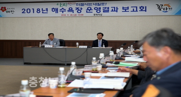 충남 태안군이 28일 군청 중회의실에서 관련 부서장과 해경 등 유관기관 및 번영회 관계자 등 50여 명이 참석한 가운데 가세로 군수 주재로 ‘2018. 해수욕장 운영결과 보고회’를 열고 금년도 해수욕장 운영 결과와 부서별 점검사항 및 보완점을 논의했다.