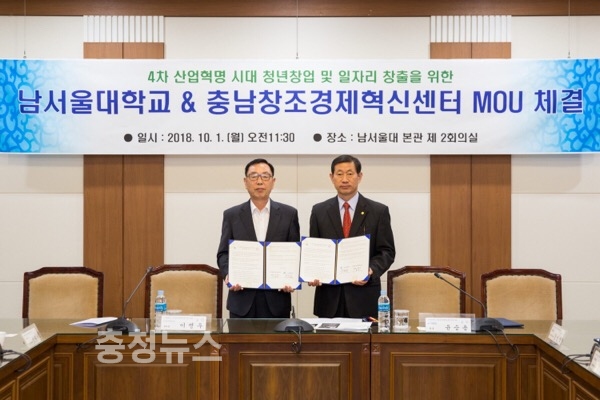 남서울대학교(총장 윤승용)는 충남창조경제혁신센터와 ‘4차 산업혁명 분야의 청년 창업 및 일자리 창출’을 위한 업무협약을 1일 체결했다.