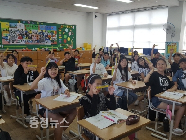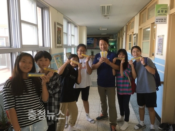 학용품 ‘자’ 18개 초등학교 전교생에게 전달