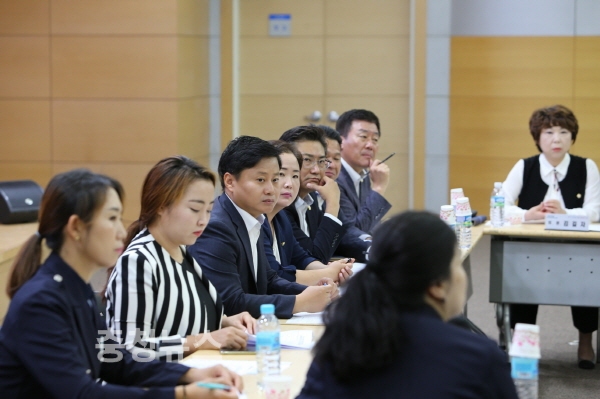 이날 간담회는 천안시의회가 주최했던 지난 7월25일 동남녹색어머니회, 8월7일 서북녹색어머니회와의 간담회에서 녹색어머니회 회원들이 요구했던 건의사항 38건의 처리결과 및 진행사항(완료 10, 진행 중 25, 불가3)에 대한 설명과 기타 개선사항에 대한 의견을 나누기 위해 마련됐다.
