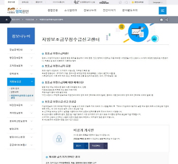 부정수급 신고방법은 천안시 홈페이지에서 정보나누미, 지방보조금 부정수급 신고센터로 접속해 비공개 게시판에 신고 취지와 이유를 적고 부정수급자 부정행위와 관련한 증거 자료를 제시하면 된다. 신고자에 대한 신분과 내용은 비밀 보장돼 이를 통한 불이익은 없다.