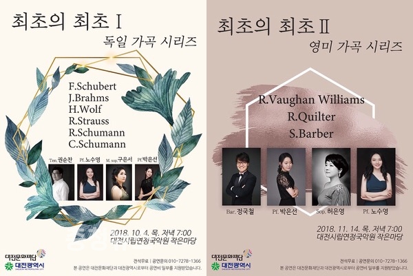 목원대 음악대학과 일반대학원 음악학과 반주전공 졸업생 노수영 씨와 박은선 씨가 ‘최초의 최초 가곡 앙상블 시리즈’를 대전시립연정국악원 작은마당에서 이달 4일과 내달 14일 오후 7시 두 차례에 걸쳐 선보인다.
