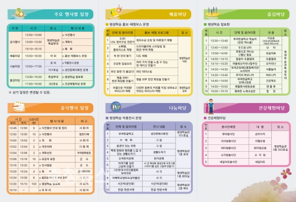 공식행사는 오후1시부터 접빈다례 시연, 개회선언과 마을 우수학습자, 부여한글학교 문해교원, 성인문해교육 시화전 수상자 등 유공자 표창, 축사, 발표회 순으로 진행된다.