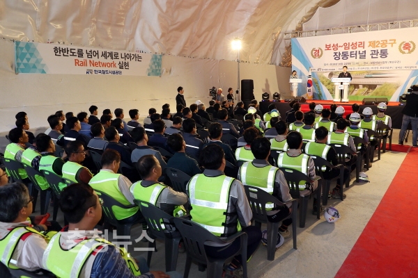 이날 장동터널 관통식에 참석한 김상균 이사장은 “목포(임성리)∼보성 철도건설 사업의 최대 난공사인 장동터널이 무사고로 관통돼 후속공정에 더욱 박차를 가할 수 있게 됐다”며, “철저한 사업관리를 통해 2020년 적기 개통해 남해안 동서축 간선철도망으로서, 영·호남 지역주민의 교통편의 증진에 기여할 것”이라고 말했다.