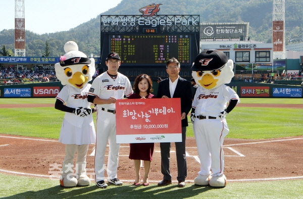 한화이글스는 3일, 한화생명 이글스파크 장외무대에서 소외된 이웃을 위한「희망나눔 기부데이」를 초록우산어린이재단(본부장 박미애)과 함께 진행했다.