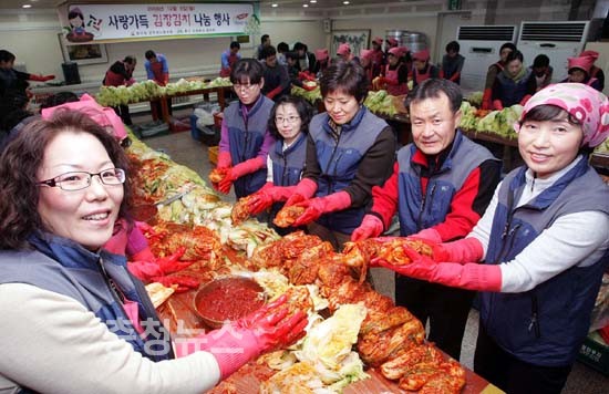 대전 동구 공무원노동조합(위원장 송인구)이 8일 동구청 후생관에서 사랑의 김장김치 나눔 행사를 가졌다.